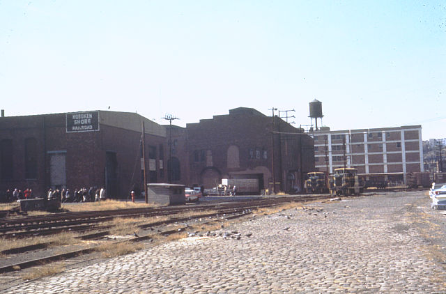 - Arguably the most "classic shot" of this bunch, this view of the NMRA group at Hoboken shows their two excursion buses, the enginehouse, and an HBS 44-tonner, as well as the prominent bakery building in the background.