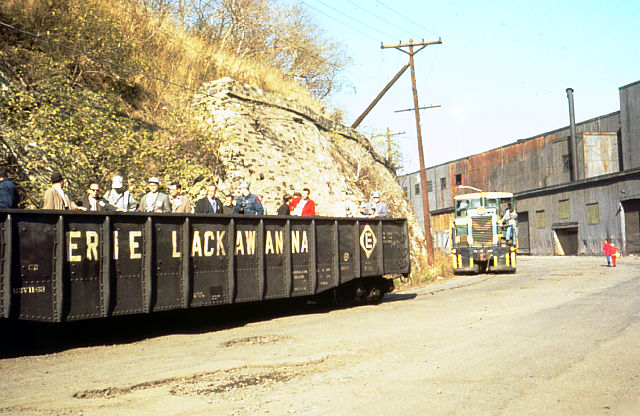 - Another classic scene is this view of 701 with the NMRA excursion, returning north on River Street. This scene has changed dramatically today. In the background is the Pennsylvania Railroad marine facility - note the giant Keystone on the building in the background! Today, this is a drydock facility for barge repair. Up the hill behind the trees on the right is the Hoxie House,