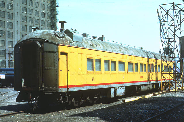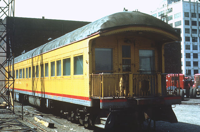 - In addition to HBS' own private car, a Union Pacific "Overland" observation car, number 120, sat at 14th Street for quite a time as well. Here are views of the observation end and the non-obs end.